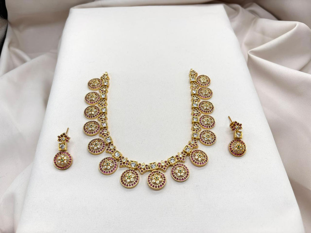 Experience timeless elegance with this Jadau Kundan Short Necklace, crafted to reflect exquisite artistry and superior quality. Its intricate kundan work offers a refined, premium finish that enhances any attire, making it perfect for special occasions. Designed for a comfortable fit, this necklace combines traditional craftsmanship with a contemporary appeal, ensuring you stand out with understated sophistication.